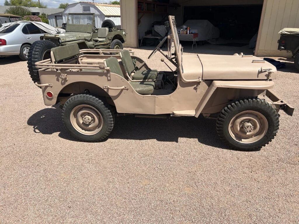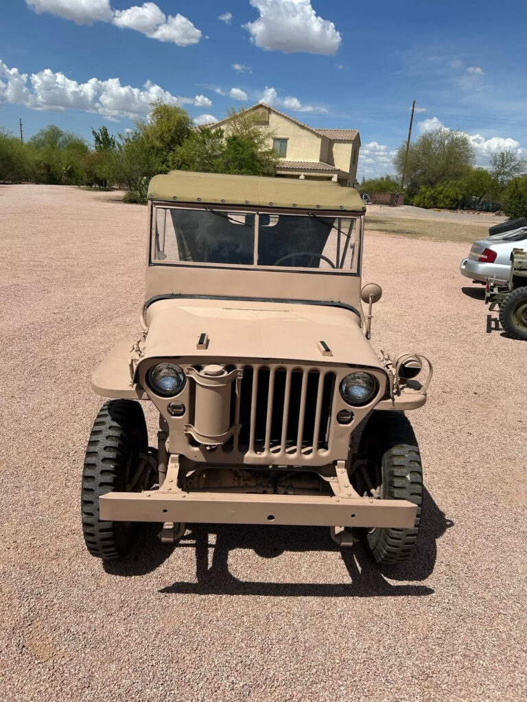 1943 Ford GPW is a Rare example of U S Army World War II vehicle that appears to have been deployed in a Desert War theater during 1943-1945. When I acquired it a year ago from a barn in Arizona, the desert Gold paint was on it, but was aged. The paint was very alike to how these jeeps were painted on the ships on way to Allied Forces that were engaging in sandy deserts in Africa and the Middle east. Very alike the SAS Airborne jeeps , this particular jeeps aesthetics reflected indicative elements of a survivor desert deployment. The seller could not ascertain the authenticity due to lack of records available.